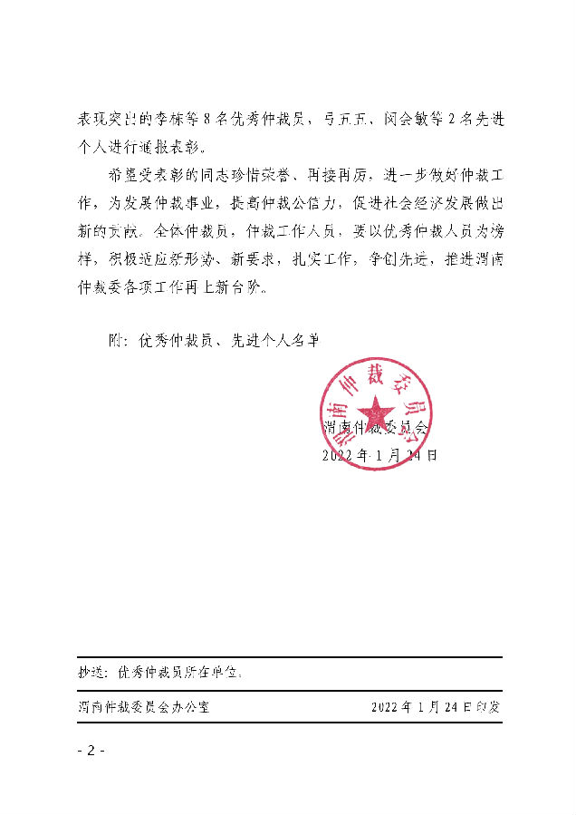渭南仲裁委員會 關(guān)于表彰優(yōu)秀仲裁員、先進個人的決定