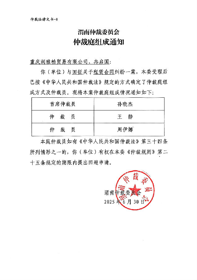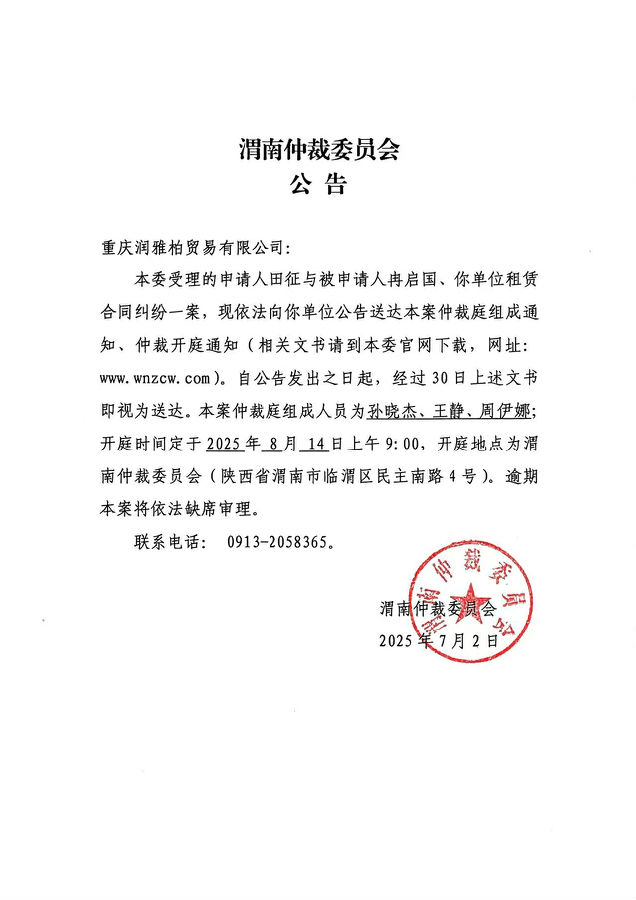 重慶潤(rùn)雅柏貿(mào)易有限公司、冉啟國(guó)與田征租賃合同糾紛案公告