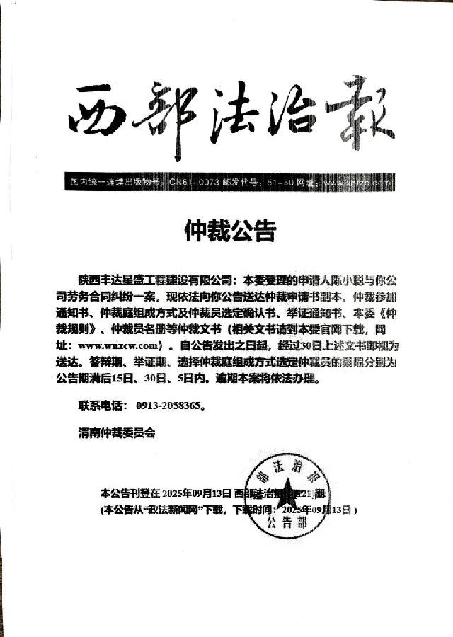 陳小聰與陜西豐達星盛工程建設(shè)有限公司勞務(wù)合同糾紛案公告